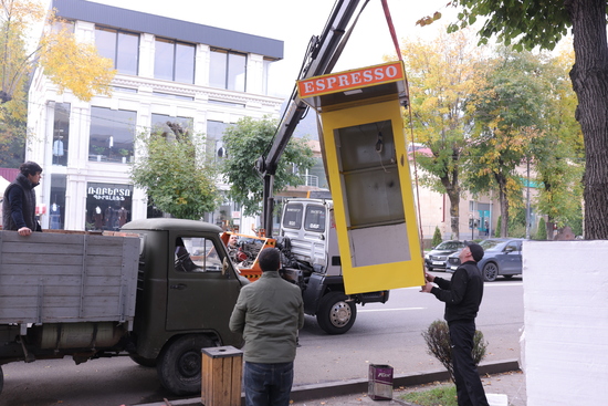 Մայթերը՝ քաղաքացիներին․ Վանաձորի կենտրոնական՝ Տիգրան Մեծ փողոցից հեռացվում են մայթերին տեղադրված սուրճի ապարատները: